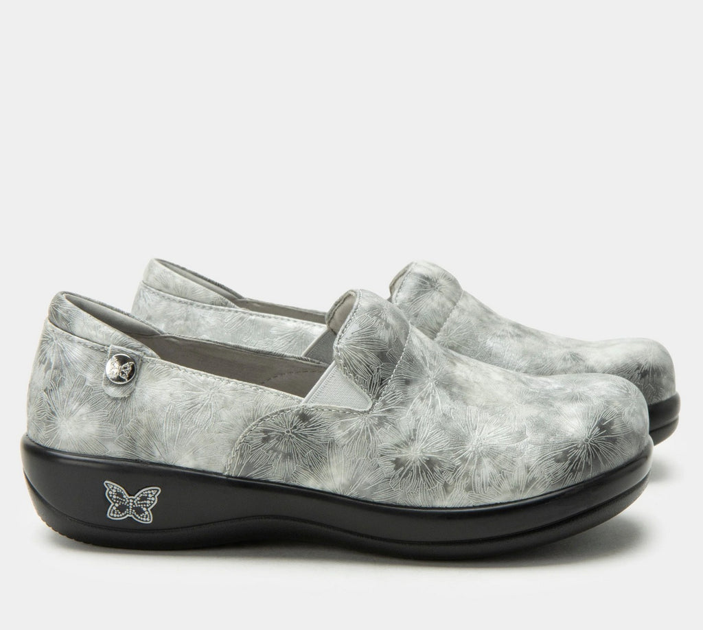 Slip-ons are today's wardrobe warriors, like this leather style with elastic side gores and gentle padding at the instep and collar. The rounded toe and removable ergonomic footbed made of memory foam and cork enhance the comfort, while the slip-resistant career casual outsole offers all-day support. Featured in a Stellar Silver colourway on a laser etched leather upper.