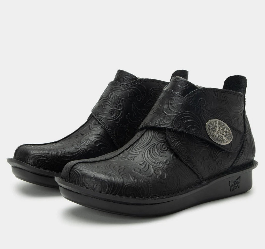 The Caiti is a casual ankle boot on the mini outsole, along with hand stitching and a detailed buckle. Complete with warm lining and adjustable strap across the vamp for easy slip-on and off. Perfect for transitioning seasons. Featured in a Night N Gale colourway on an embossed leather upper.