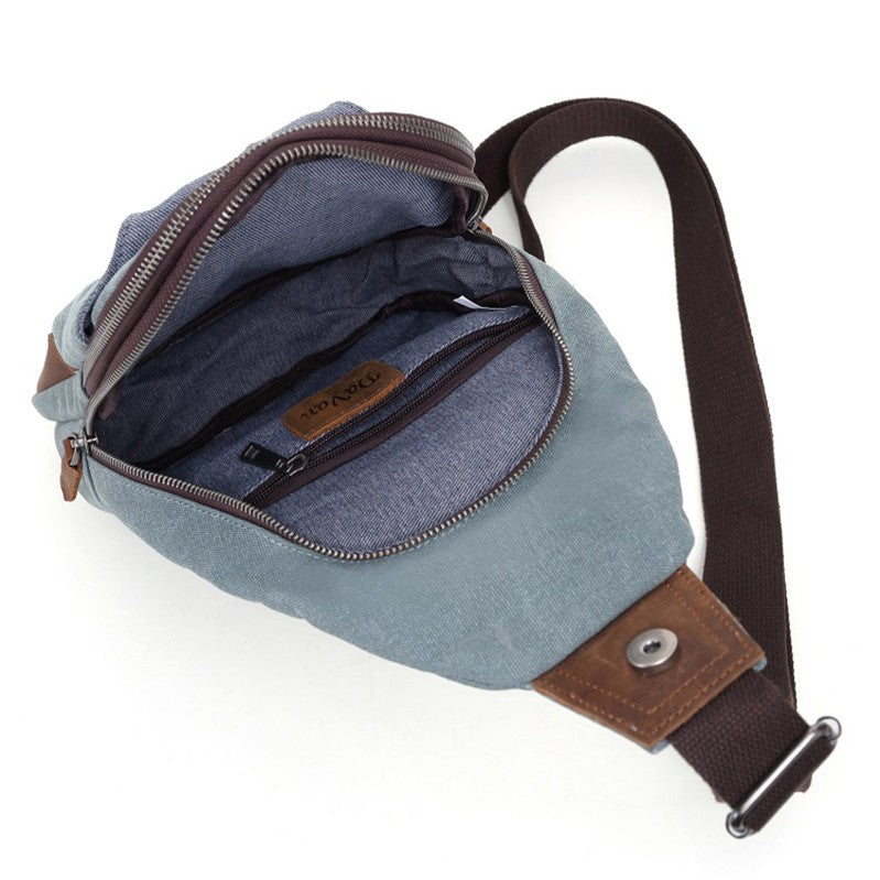 Their newest canvas sling bag with a sleek and modern design. With leather details and multiple zippered pockets, this bag is designed for those on the run while prioritizing organization. The leather buckle conceals a magnetic button for quick access into the main compartment and adds a luxurious detail.