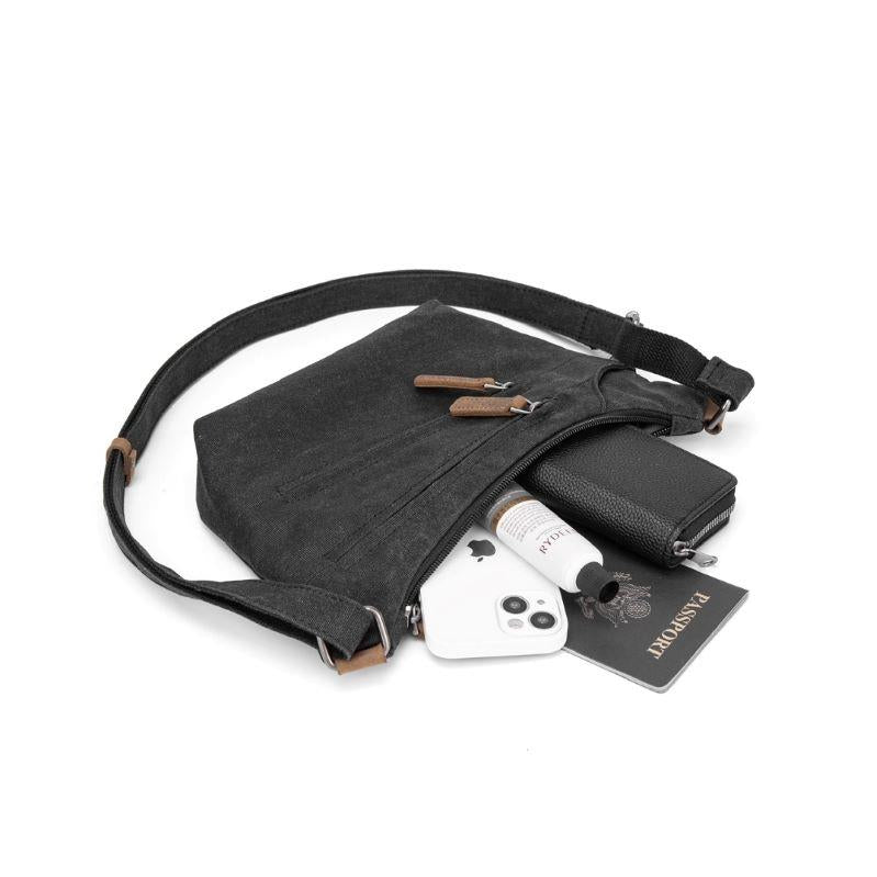 Say hello to your new everyday bag. It’s the perfect size to keep all your essentials close by all while keeping you organized. Beyond the 2 zippers on the face of the bag, the main compartment features a cardholder, and the rear of the bag features a dedicated cellphone pocket. It’s lightweight and is made using our staple canvas fabric so it’s water repellent and durable.
