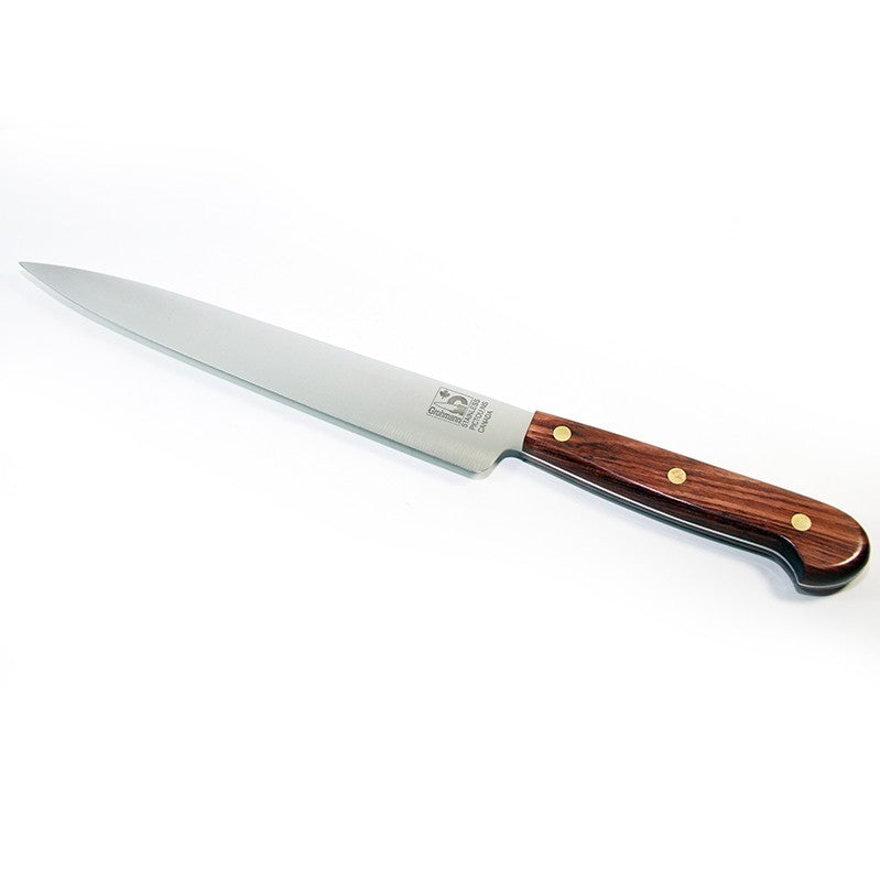 Straight blade, rosewood handle. For slicing turkey dinner, ham, deli meats. 115grams. Full tang steel medium weight.