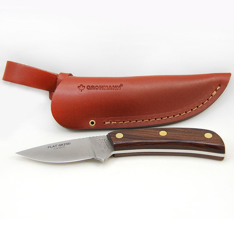 Grohmann takes pride in their products and that means using high quality materials. Grohmann's most popular stainless steel in the outdoor fixed blade knives are fashioned from German high carbon stainless, such as 4110, which is somewhat comparable to the USA 440 series. They maintain a 56-58 degree rockwell hardness on all outdoor knives. This steel has withstood the test of time due to its ease of resharpening and long lasting edge holding ability.