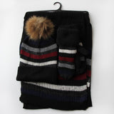 Knitted Striped Scarf, Hat and Mitt Set