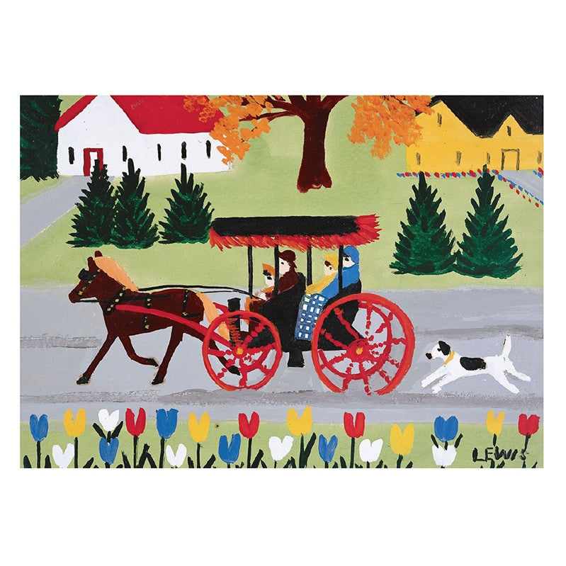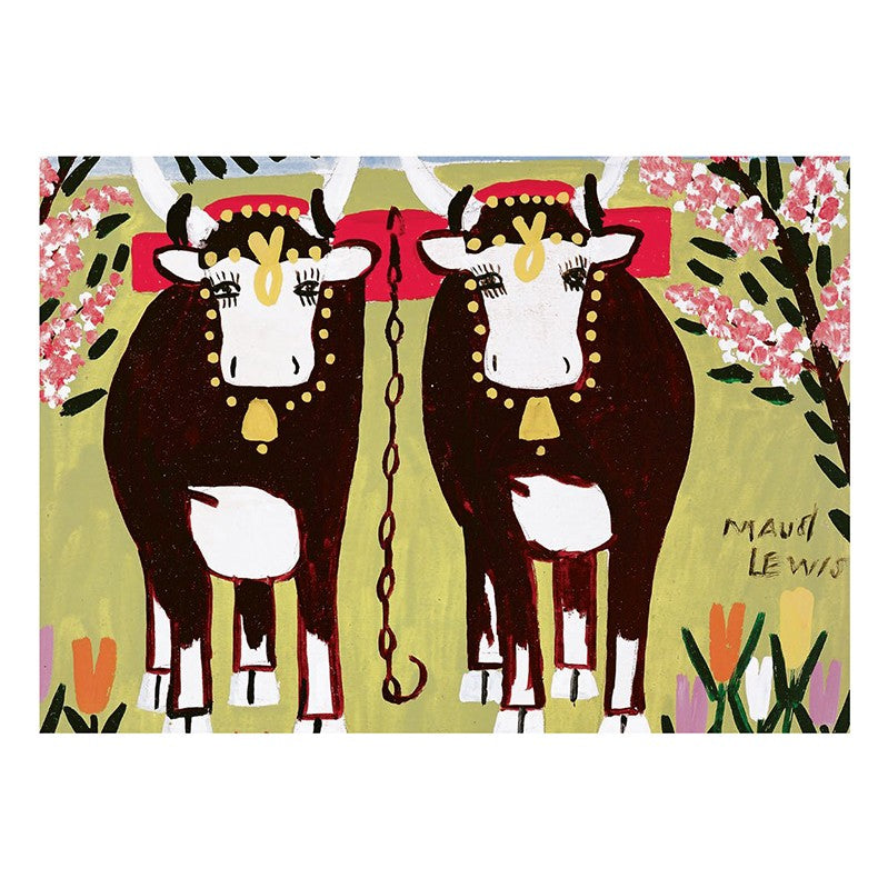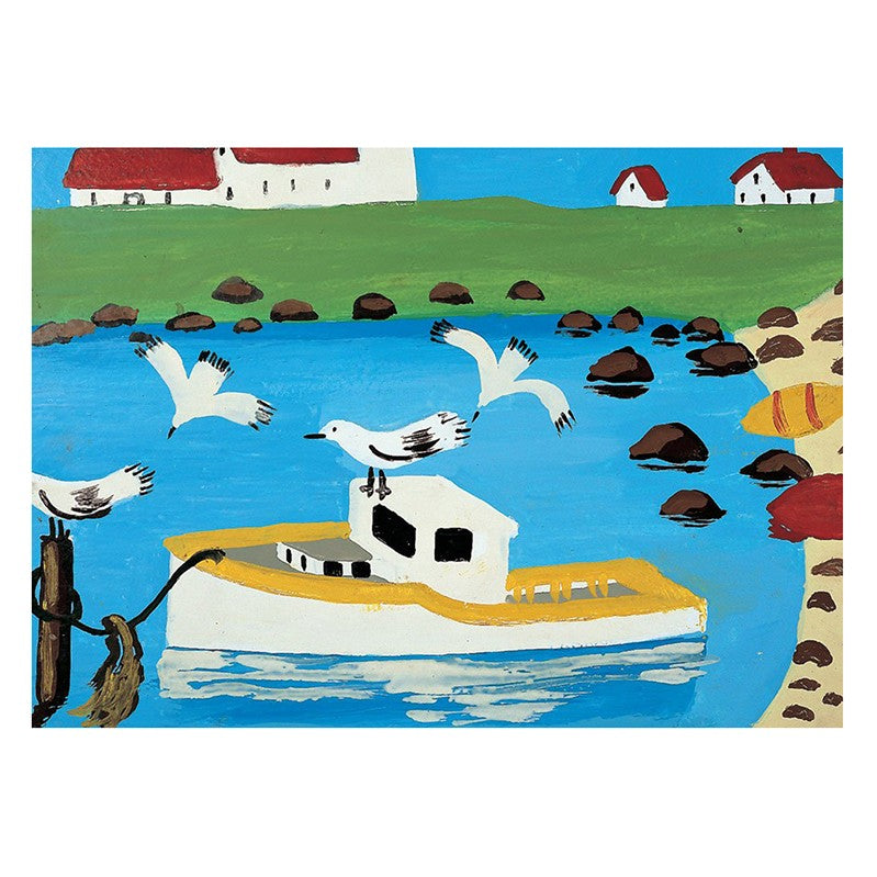 From her small world came a proliferation of paintings depicting a charming rural life full of flowers, cats, sleigh rides, deer, and teams of curly-lashed oxen. Maud painted: boards, rocks, scallop shells and household objects with whatever paints came her way, often marine paints from local fishing boats.